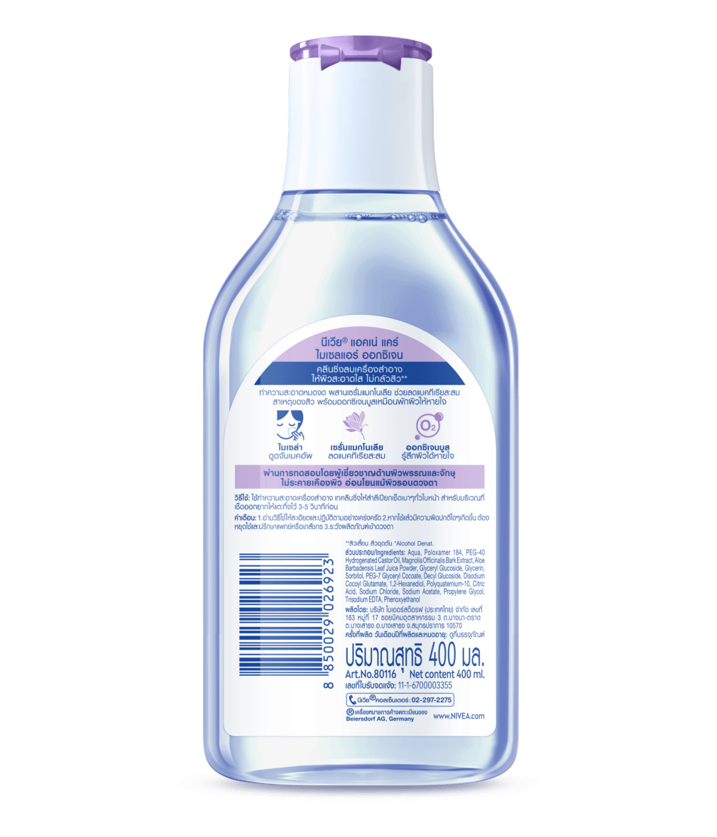คลีนซิ่งลบเครื่องสำอาง จบวงจรสิวด้วยการจัดการแบคทีเรียสะสมที่ก่อให้เกิด ด้วยการเช็ดทำความสะอาดผิวหน้าทุกวัน ด้วย นีเวีย แอคเน่ แคร์ ไมเซล่า ผสานส่วนผสมทรงพลัง ทำความสะอาดได้หมดจด 100% พร้อมลดสิวได้จริง